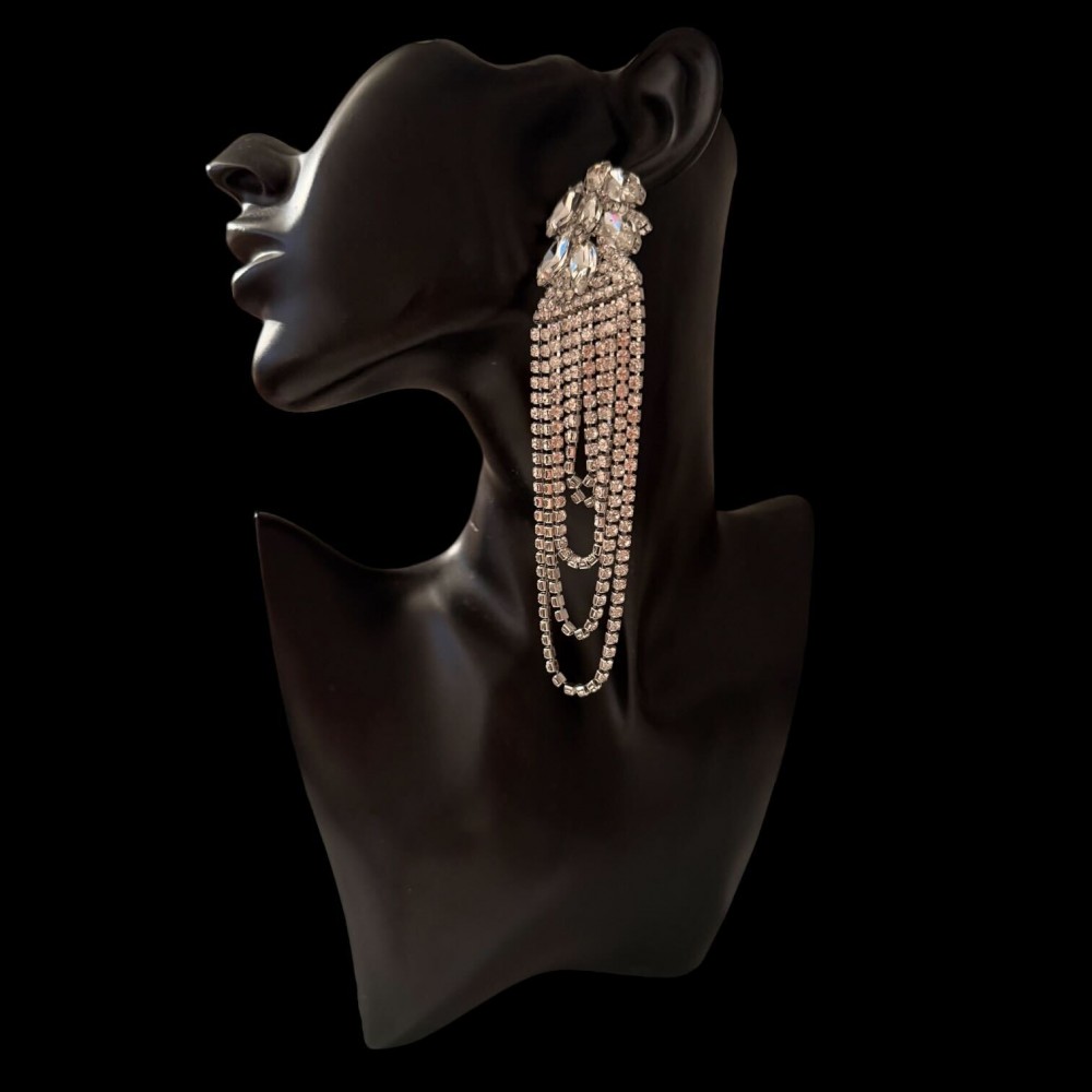 Sur base argent, cascade de chaînette en strass, longue et volumineuse, ces boucles mettront en valeur votre bikini.